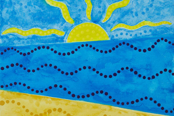 Artist context navigation Shop > Artists > Artist 446 of 746 Lucas W Wiradjuri people Sold Beach-Side Sunrise Lucas W, Wiradjuri people