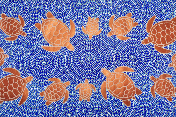 AMW is a proud Palawa artist and has been a participant in The Torch program since 2020. His artworks often reflect a deep connection to Country and the natural world, particularly Tasmania’s unique ecosystems and wildlife. Through his paintings, AMW raises awareness about the fragile balance of the environment; from the ancient Maugean Skate fighting for survival in Macquarie Harbour, to his own journey of longing for home on the Derwent River. His work speaks to resilience, cultural continuity, and the responsibility to care for Country, ensuring its stories and species endure for generations to come.